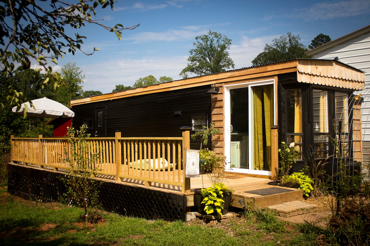 Entfliehe in unser charmantes kleines Haus im Herzen der Natur! Dieser wunderschön gestaltete Raum ist perfekt für jeden ruhigen Rückzugsort und bietet alles Wesentliche für einen angenehmen Aufenthalt, einschließlich eines gemütlichen Bettes, einer voll ausgestatteten Küchenzeile und eines modernen Badezimmers. Entspanne dich auf der Außenterrasse und genieße die ruhige Umgebung. Egal, ob du einen romantischen Kurzurlaub oder ein Solo-Abenteuer suchst, unser Tiny House bietet die perfekte Mischung aus Einfachheit und Komfort. In der Nähe von Wanderwegen, lokalen Sehenswürdigkeiten und mehr!