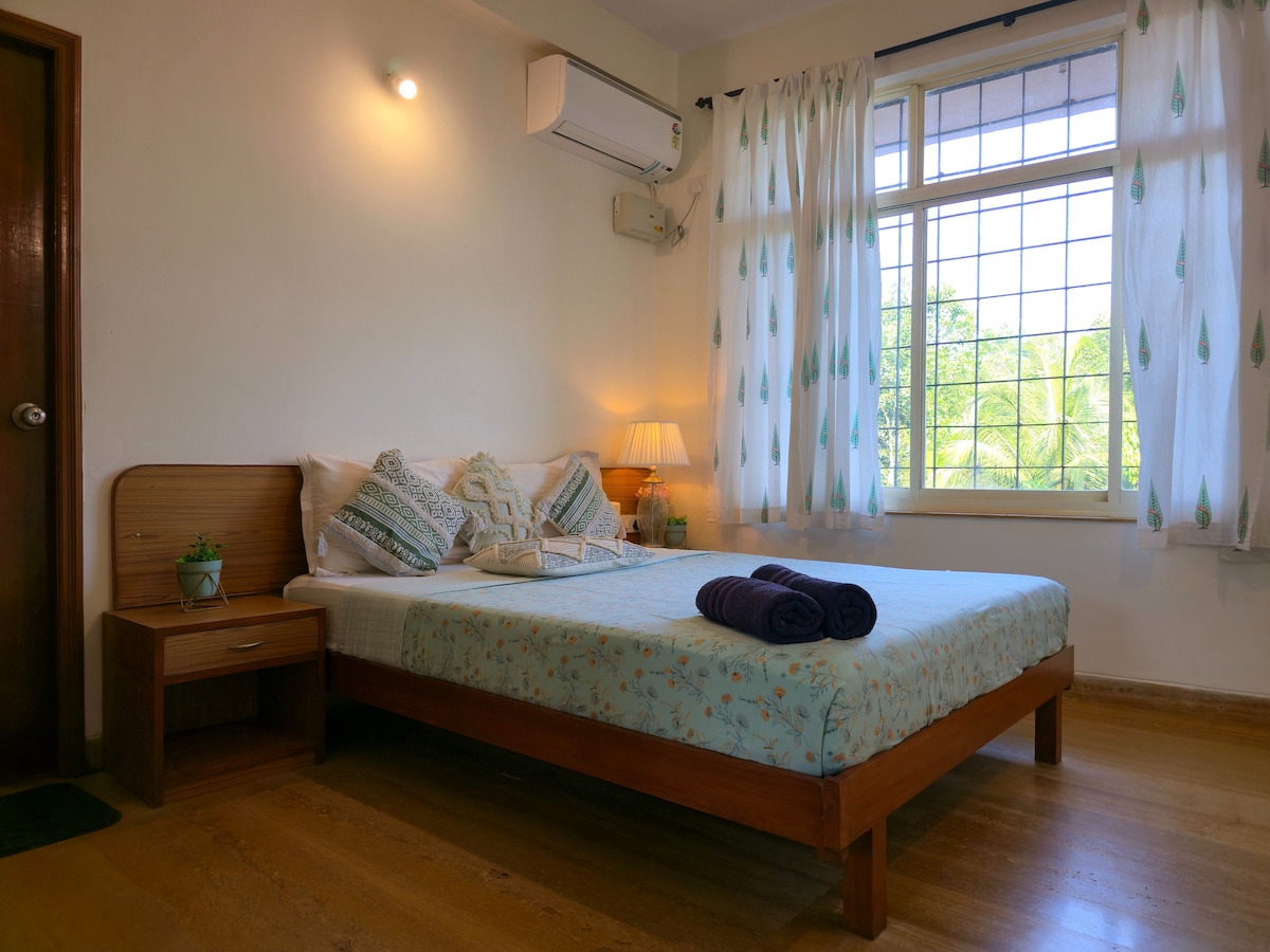 Eine schöne Boho-Atmosphäre war vor meinem Geist, als ich dieses atemberaubende Ferienhaus kreierte. Versteckt in einer ruhigen Ecke, mit Blick auf einen Bio-Küchengarten mit Blick auf die Felder, wirst du in eine vergangene Ära versetzt, in der die Dinge einfach viel langsamer waren. Wenn man Zeit damit verbrachte, die Vögel und Bienen zu beobachten, gemütliche Tassen Tee zu genießen und auf dem Balkon zu plaudern, war das Teil des Tages. Umgeben von Bäumen siehst du eine andere Seite von Goa. Dennoch bist du buchstäblich 5 Minuten vom Partyzentrum Goas entfernt.