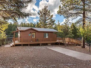 Haustierfreundliches Pinetop Chalet - Blick auf die Terrasse/den Wald!
