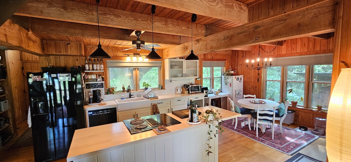 Genieße die Klänge der Natur, wenn du in diesem einzigartigen Landhaus am privaten Turkey Pond übernachtest. Hirsche, Truthühner und Raubvögel sind nur einige der Wildtiere, denen du begegnen kannst. Atemberaubende Sonnenuntergänge sind an der Tagesordnung und Kajaks stehen zum Paddeln bereit. Es gibt Sitzgelegenheiten im Freien und einen Sonnenschirm für die Veranda und Sterne funkeln in klaren Nächten. Besondere Details machen deinen Aufenthalt komfortabel und gemütlich, einschließlich Warmwasser auf Abruf, einem luxuriösen Queensize-Bett mit einer gemütlichen Bettdecke, einer Mini-Split-Heizung/Klimaanlage, einem Dish-Netzwerk, einem Smart-TV und vielem mehr.