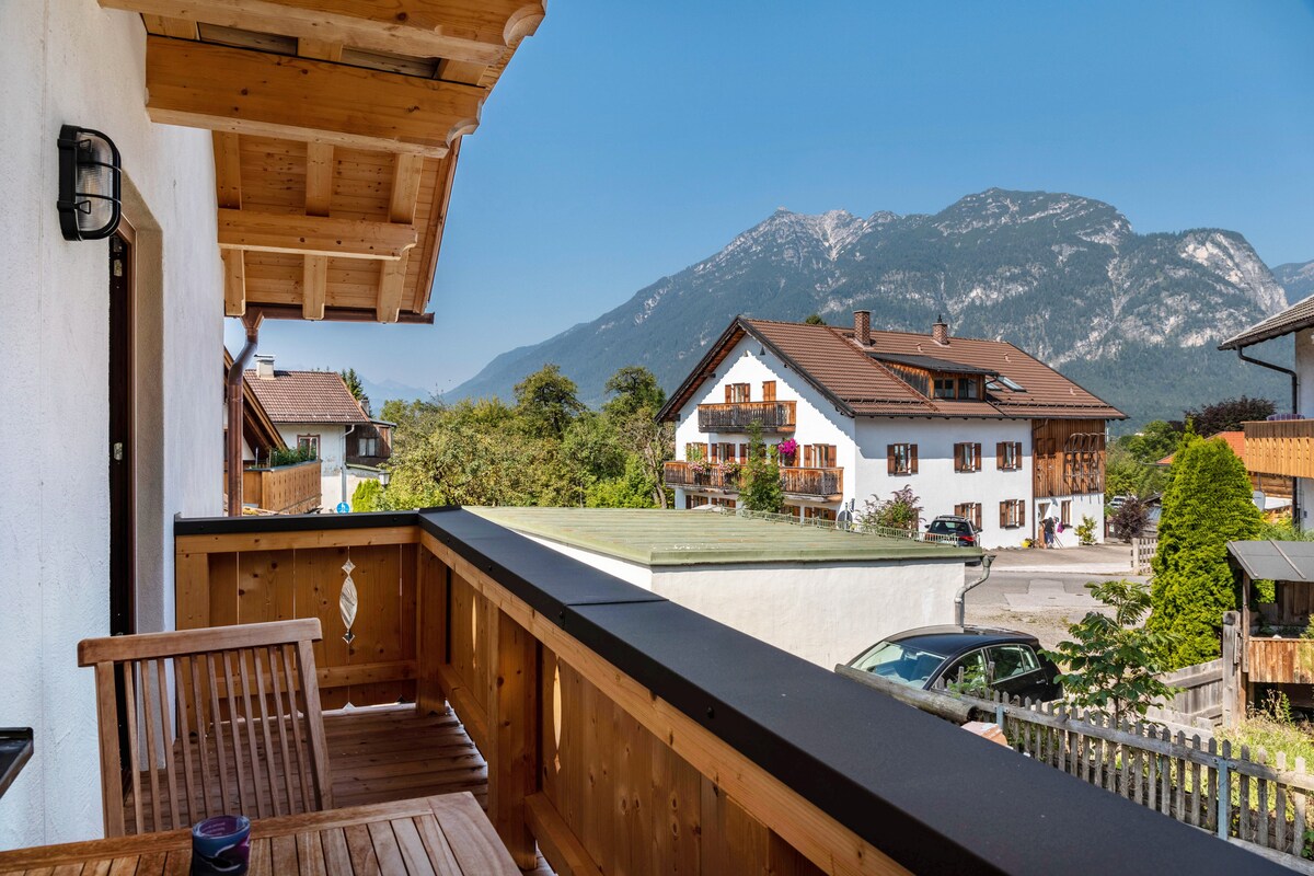 Die neu renovierte und liebevoll ausgestattete Wohnung mit traumhaftem, unverbautem Bergblick auf den Kramer und die Ammergauer Alpen bietet sie auf 27m2 genug Platz für einen entspannten Urlaub in den Bergen und ist der perfekte Ort für Paare, kleine Familien oder Freunde bis zu 3 Personen. Die Wohnung liegt in optimaler Lage für viele Aktivitäten im Sommer und im Winter, und ist fußläufig in ca. 12 Min vom Garmischer Zentrum entfernt. Die Bergbahnen sind in nur wenigen Minuten erreichbar.