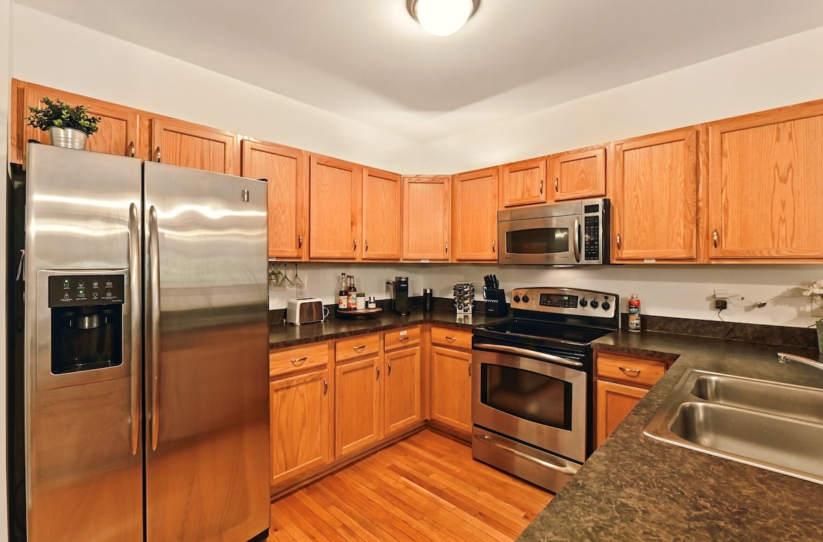 Detroits erstklassiges Executive Retreat mit einem lustigen Pizza-Thema in der Nähe von LCA! Verfügt über einen Schreibtisch, eine ergonomische Einrichtung, einen Drucker, 2 Queensize-Betten, eine ausklappbare Couch, einen elektrischen Kamin, Hausschuhe im Detroit-Stil, eine voll ausgestattete Küche, eine Kaffeestation, eine Garde von Frau Pac-Man und Galaga. Privater Eingang, private angeschlossene Garage, ebenerdiges Schlafzimmer mit ½ Bad, nur wenige Schritte von LCA, Fox Theatre, Ford Field, Comerica Park, Q Line in der Nähe. Parkettböden, neuer Teppich, Edelstahlgeräte, Waschmaschine/Trockner, Tastatureingang. Jetzt buchen!