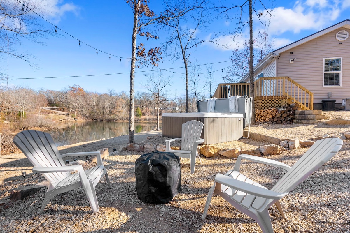 Neu, modern und gemütlich mit vielen Annehmlichkeiten und Aktivitäten. Entspanne dich im Whirlpool mit Blick auf den privaten See oder entspanne dich am Privatstrand und beobachte, wie die Kinder Spaß im Paddelboot haben. Schönes, abgelegenes Grundstück auf 5 Hektar. Jede Menge Parkplätze und einfacher Zugang für Anhänger und überdachte Parkplätze. Minuten von Stränden, Bootsrampen und Yachthäfen am schönen Lake Wappapello entfernt. Mehrere State Parks, Wanderwege und Freizeitaktivitäten auch innerhalb von Minuten.