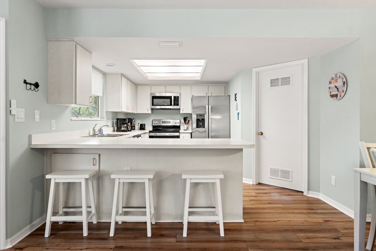 Entfliehe in unser komplett renoviertes Haus mit einem rustikalen Dekor im Bauernhausstil, das hell und gemütlich ist. Es befindet sich auf einem Doppelgrundstück in einem ruhigen Kanal am Weeki Wachee River. Das Haus verfügt über eine separate Studio-Suite mit einem Kingsize-Bett mit eigener Küchenzeile, einem Wohnzimmer mit einem großen Schlafsofa, einem 50-Zoll-TV und einem kompletten Badezimmer. Im Obergeschoss befinden sich 2 zusätzliche Schlafzimmer und Badezimmer. Die Küche im Obergeschoss ist komplett mit Kaffeemaschine und Toaster ausgestattet. Diese Unterkunft ist ein idealer Ort für große Familien!