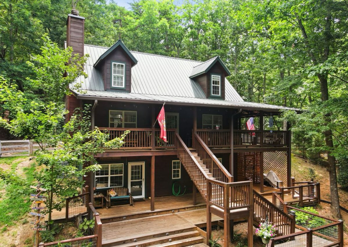Entfliehe in diese private 4BR/3BA Hütte auf fast 5 bewaldeten Acres in Sautee Nacoochee, nur wenige Minuten von Helen entfernt! Genießen Sie den saisonalen Blick auf den Mt. Yonah, eine umlaufende Veranda, einen gemütlichen Steinkamin und eine voll ausgestattete Küche. Perfekt für Familien, Gruppen oder Tierhaltung mit eingezäuntem Garten. Gemeinschaftlicher Flusszugang zum Tubing, Kajakfahren und Angeln. Mit Highspeed-Internet kannst du ganz einfach von überall aus arbeiten. Frieden, Privatsphäre und Bergzauber erwarten Sie!
