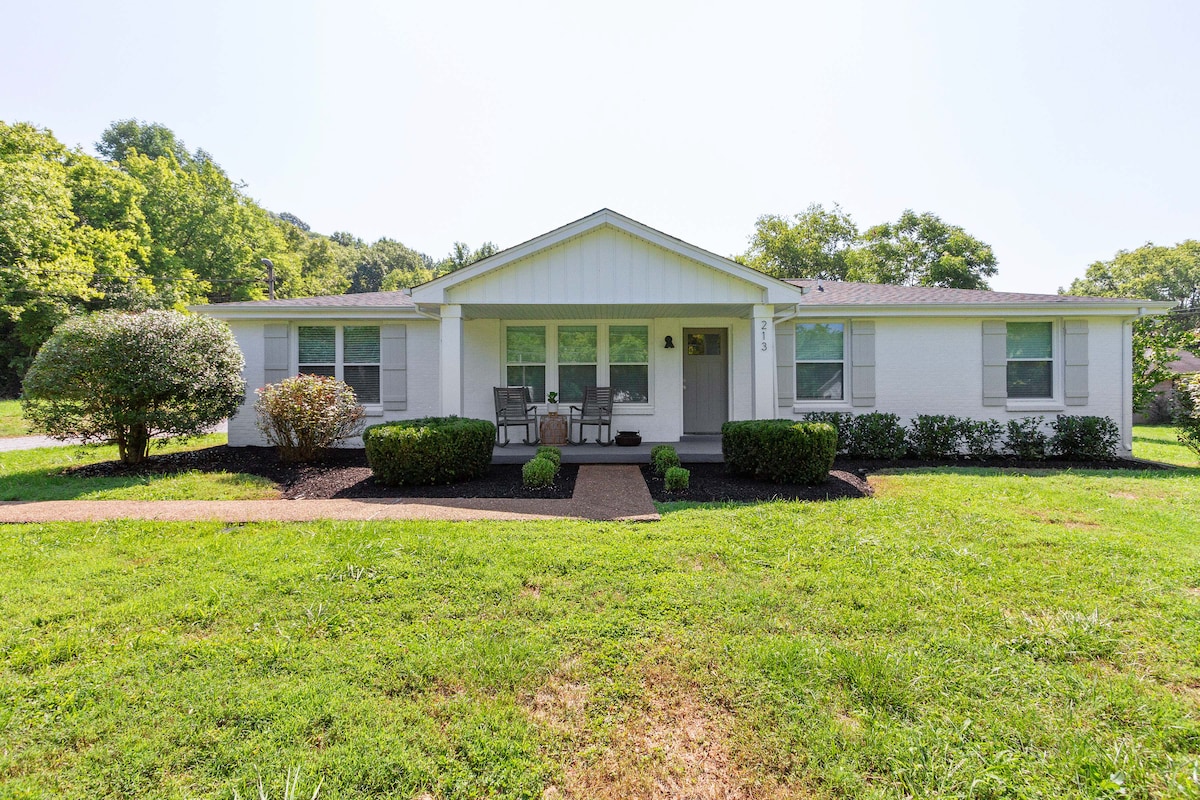 Gönn dir etwas und entfliehe in unser charmantes Landhaus im historischen Franklin, TN. Dein Aufenthalt beinhaltet eine einzigartige Mischung aus rustikalem Charme, einem Kamin mit Kerzenlicht sowie modernen Annehmlichkeiten und Ausstattungen. Entspanne dich in der ruhigen Atmosphäre auf einem 1 Hektar großen Grundstück mit Hühnern und Gärten direkt vor deiner Tür, während du nur wenige Minuten von allen Attraktionen und Sehenswürdigkeiten der Innenstadt entfernt bist. Diese ruhige Atmosphäre macht es zum perfekten Ausflugsort für diejenigen, die eine einzigartige Kombination aus Entspannung und Komfort suchen.