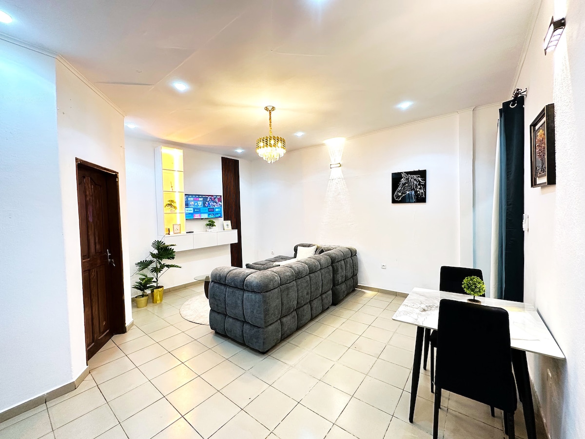 Unsere komplett renovierte, helle Unterkunft verbindet afrikanische und westliche Eleganz. Im Herzen von Akwa gelegen, bietet es schnellen Zugang zu den besten Adressen der Stadt. Genießen Sie eine moderne amerikanische Küche, Starlink-WLAN (120 Mb/s), einen eigenen Schreibtisch, eine einzigartige Schallisolierung mit integrierten Lautsprechern, IPTV, Klimaanlage und einen Generator. Sicherheit rund um die Uhr mit Kameras und Safe, Sauberkeit 5★ garantiert.