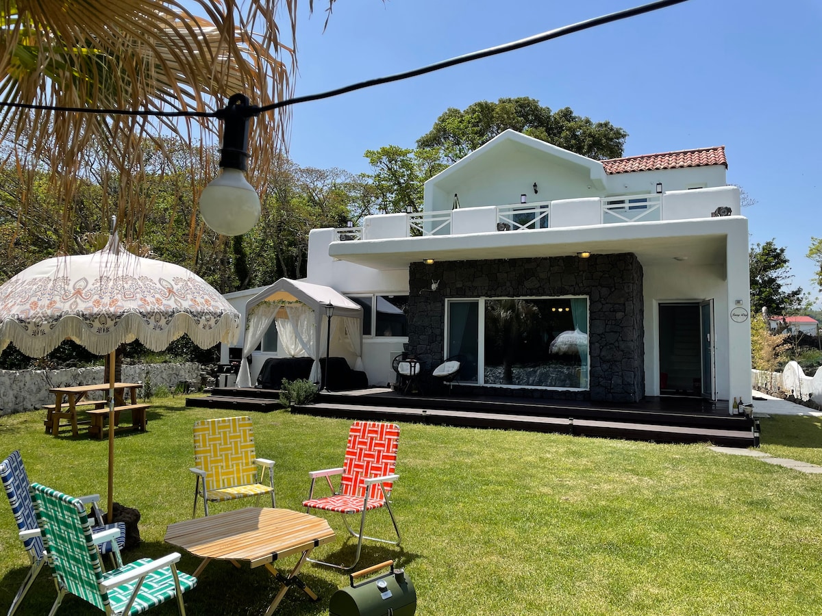 Hamdeok-Strand in der Nähe großes einzigartiges 2-stöckiges Einfamilienhaus / Meerblick / große Rasenfläche / Hund / Party