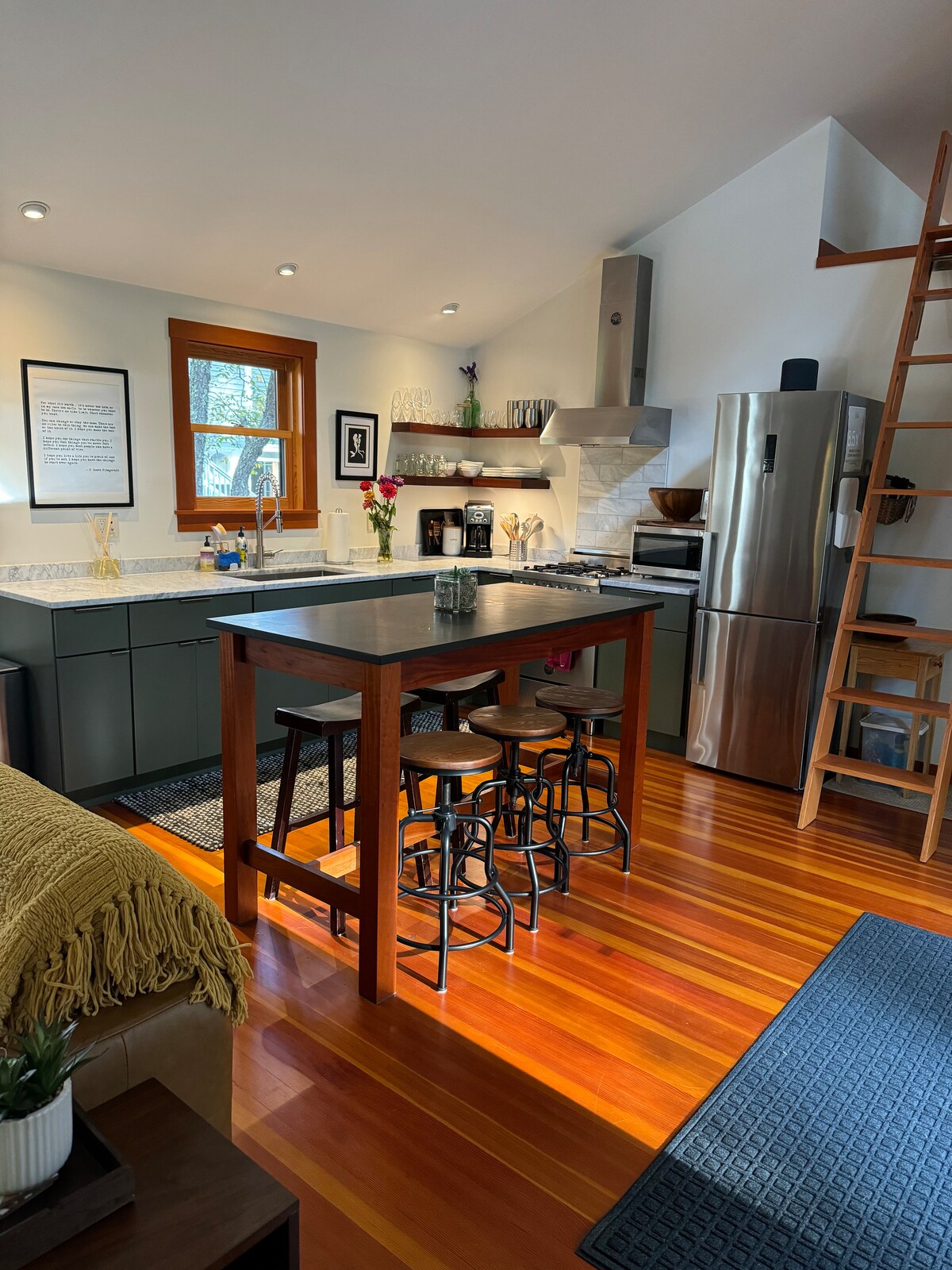 Diese neue, sehr private Wohnung, die an unser Haus angeschlossen ist, befindet sich in einer ruhigen und malerischen Umgebung, nur wenige Minuten vom Dock Square entfernt. Sie ist ideal für Paare, Solo-Abenteurer und Familien mit einem Kind. Wenn du den Tag an einem der schönen Kennebunk-Strände verbringen möchtest, sind sie nur wenige Minuten entfernt. Wir haben uns der ökologischen Nachhaltigkeit verschrieben und die Wohnung wird mit Solarenergie betrieben. Ein neuer Whirlpool im Freien wurde kürzlich im Februar 2024 installiert! Wir freuen uns auf deinen Besuch!